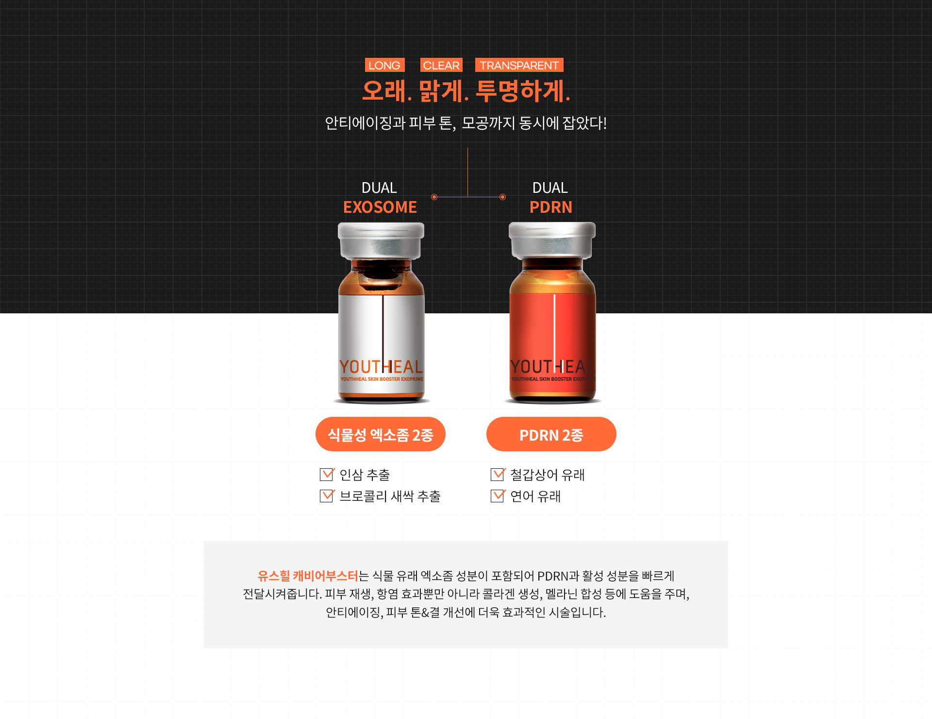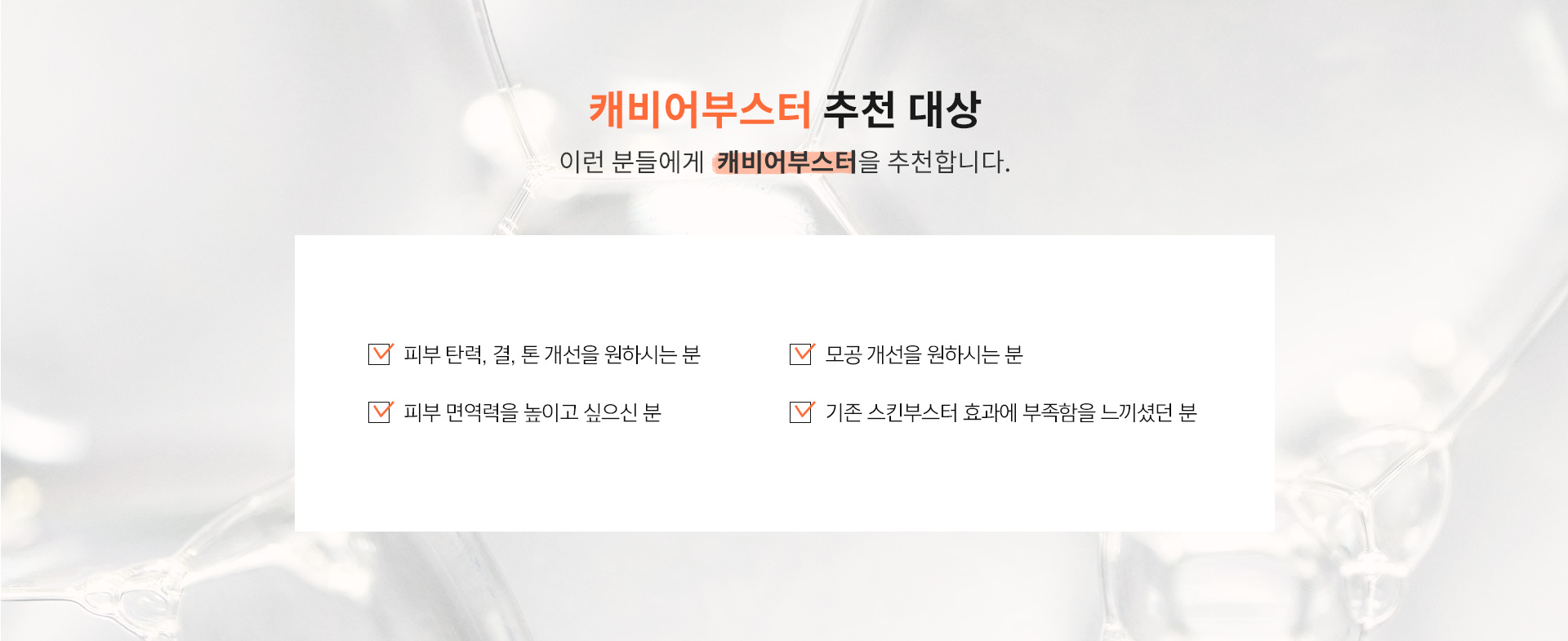 캐비어부스터는 식물성 엑소좀과 PDRN으로 구성되어 피부 재생, 항염, 콜라겐 합성, 피부톤&결 개선에 효과적입니다.